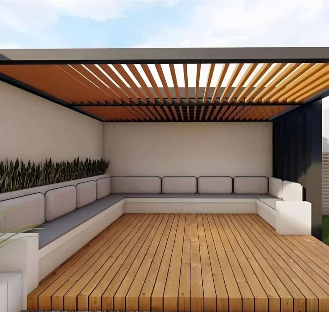 توفير الظل والحماية: تعمل البرجولات على حماية الجلسات الخارجية من أشعة الشمس المباشرة والأمطار والغبار، ما يجعلها مثالية للجلوس في الهواء الطلق طوال العام.