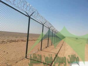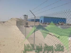 ويتم تركيب وايرات الربط والشبك السفلي بالارتفاع المطلوب وعمل الاسلاك الشائكه حسب طلب العميل