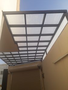 - مظلات الممرات والمداخل والتي يتم استخدامها لحماية الزائرين أو أصحاب المنزل من ارتفاع درجات الحرارة، وتتنوع أشكالها وألوانها بما يناسب المنازل العصرية.